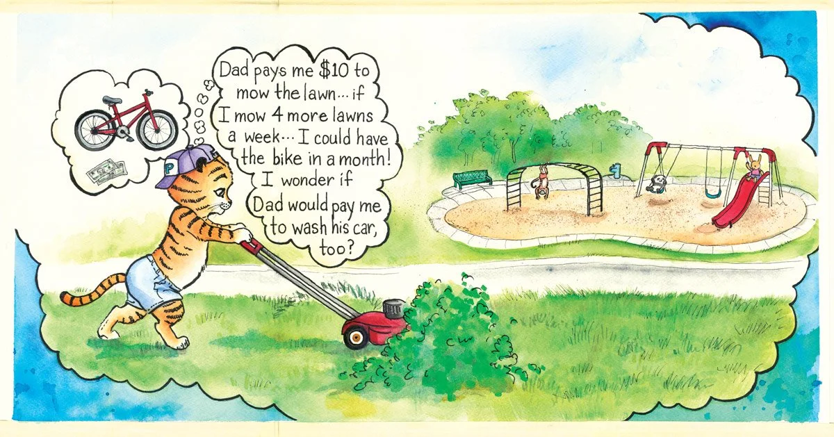Timmy Tiger is an “achiever” — someone who likes to succeed and gain recognition. He worries about being successful and achieving enough to get recognition from others. He has trouble sleeping and is thinking about his day when he is visited by his inner wisdom in the form of Twinkle, a star that illuminates paths (choices) and allows him to see things in a new way.